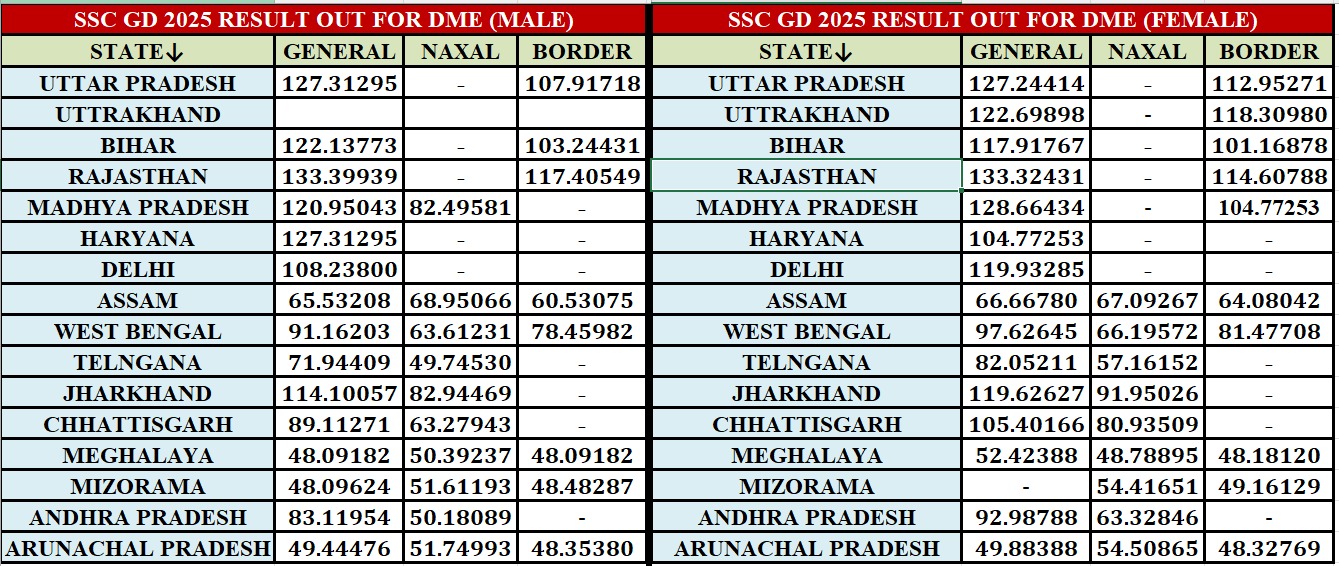 SSC GD Result 2025 Out for DME: Official Release Date