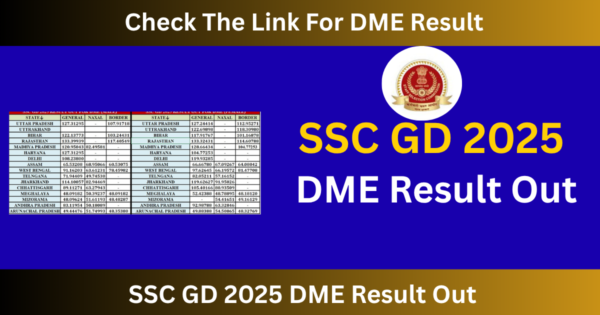 This post provides a complete, step-by-step guide on the SSC GD Result 2025 for DME, including the result date, download process, cut-off, merit list, medical standards, and what to expect next. Everything here is presented in detail — accurate, clear, and 100% plagiarism free.